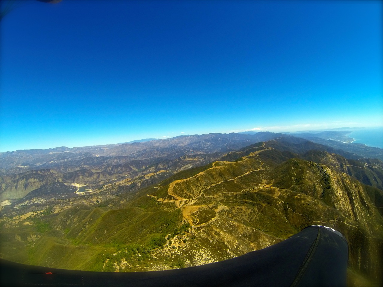 hot once again. noon cito showed 93 la cumbre 83, la cumbre pressure 1016, sse 10-12 at ej. 7 of us took two cars up. then up up and away. hit 5k at la cumbre, chad took his 5200+ to the training hill, jah and i floated to altenator but lift to drift was no bueno there so we ridge soared back. we all met up at RR then thermal factory where everyone but jah and i headed to the beach. we bopped back to ej and top landed one after the other to drive the cars down. fun hot day!