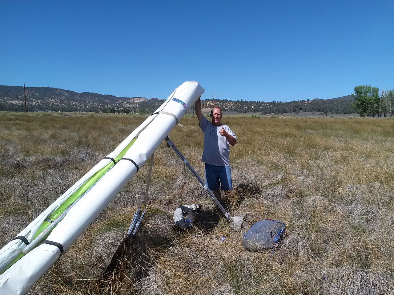 Max and Mike had "to die for" flights - great job guys! Myself and TQ were the ones that didn't launch. Eddie and two nice people helped get Edwin out of his harness and up to the road so the chopper could pick him up - one was an ER nurse, as luck would have it. I'm almost glad I didn't launch, because it was really unpredictable and switching all directions. Several more dust devils blasted thru as I was breaking down my glider - I still have grit and sand in my teeth :-)