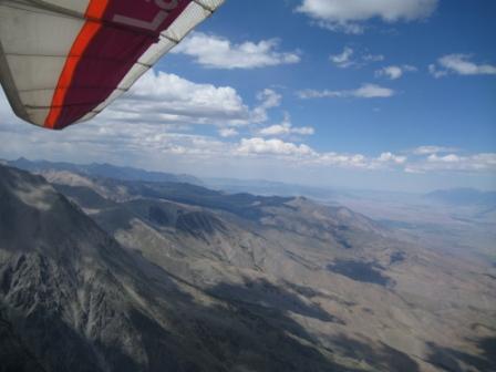 We scored one good day at Walt's Point a week ago Saturday. Rock and roll for the first few climbs, then it got better. 16k at Winoga, dolphined to the base of Onion Valley, found big lift to 13k while crossing in front of Onion Valley...flew on to Lookout and got rocked at 10k. Went around the corner low and scratched around until in front of Split Mtn, then climbed nicely to 16k, while Little John went to 17999' under a convergence cloud SW of the Big Cinder Cone, S of Big Pine. I then dolphined to below Coyote Flats, before Kehoe Hot Springs. Milked the foothills til 13k, flew off the end of the Flats toward Round Valley, landing in the last green field before Paradise. ~85 miles, 3hr 40 min flight. Everyone else landed in Bishop after tagging Chalfont or cruising the flats. Noteably, Jah tagged the 80 mile mark, then turned back to Bishop. We hiked the next day under strong SW conditions. 8)