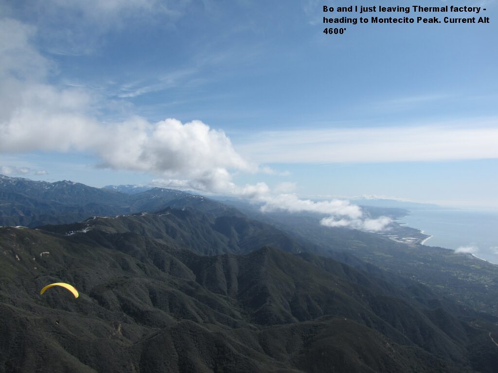 Tony de Groot wrote: ...was with a group of a couple paragliders at Montecito Peak and I mucked up a thermal, got low and they were gone.