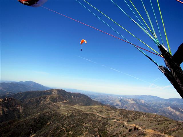 caught the fly above all bus up to altenator. warm with light se cycles up there. it seemed that if you ventured below the altenator bump out front you were done. i hung onto every piece of uptime along the powerlines with many half turns in lift for quite some time popping a hundy or 2 above launch a few times. tried to hug the ridge to la cumbre but didnt get very far with east in my face and no lift, so flipped a bitch and scooted back about 100 below launch. hung out at the bump again with wade and it seemed harder to hang on after a while, so with about 50 above the bump i rode that downhill spine to the west and got a suprisingly good glide to just below the main knob on no name. hung there for a bit without gaining anything and pushed on to VOR spine. came in below the lower rock pile and didnt have much luck so putted out to the T. seemed like the eagle crew at EJ bowl had better soaring options. saw at least one go beach bound and a few floating above parma for a long time. Hands up! fun morning in the hills!