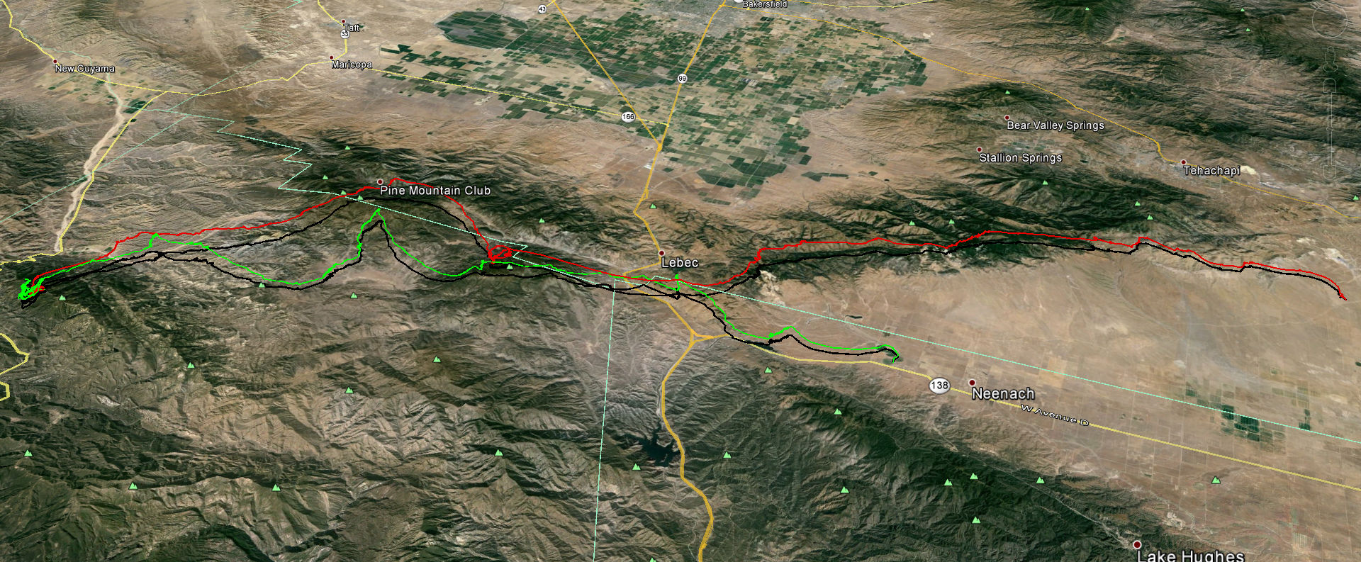 I got high enough at Boomer Junction to make a run back for Frazier and then Pine. Good thing I didn't do that since I had no idea it flushed out South of Pine. I'd have had a very long day alone on Hwy 33 while Eddy picked of Dave and chased Max. For whatever reason my oxygen-starved brain decided, I did not take my own advice and follow the Tehachapi ridge line behind Max. Instead, I made for Quail Lake in site of the wind being due South at 13-15mph. On Saturday I was so sick I could barely walk and slept a lot. I was probably thinking I'd had my flight and just to relax at lower altitude then land.
