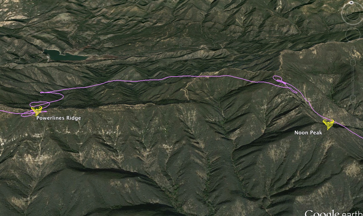 Numerous other pilots went east to about the Power Line Crossing, but opted to fly out rather than reaching for bigger altitude eastbound over the higher peaks through Casitas Pass. The lead gaggle got into the mid to upper 6s over Divide Peak. I think at least a few pilots had their personal longest flights eastbound.
