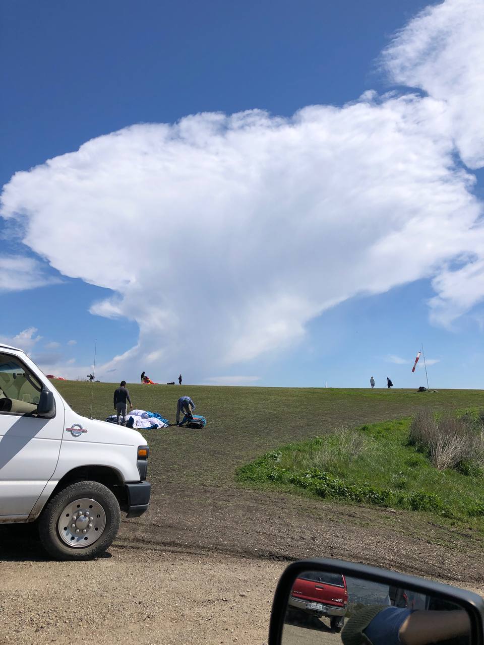 Andrew Byron had been spreading canopies but he and others (including me) suited up as the cycles became consistently up and potential OD became a concern. We were also getting anxious as the early birds were on-course westbound passing overhead in the mid 4s to low 5s.