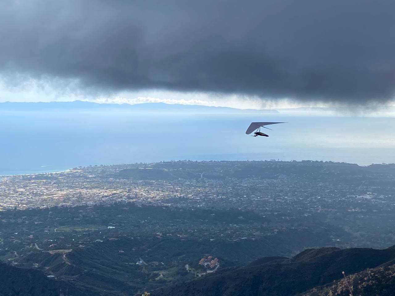 Boyd’s was a fizzle. I lost sight of Willy (he moves around fast). Santa Paula Ridge was really dark. I figured I’d end at Saint Thomas College but was able to gain a few hundred on the east end of the Puckers front points (the south spine below the Topa Bluffs). There was a dark cloud bottom to the south, so I turned south and fished upwind away from the mountains for a short way hoping to get drawn in. Glide was ok, but I opted to break off and reach across eastbound with what I had left because if I utilized any more altitude fishing south and didn’t get lucky, I wouldn’t have a chance at the base of Santa Paula Ridge. At least the short southbound penetration put me on a good downwind line toward the base of SP Ridge without needing to crab against the south flow drawing up Santa Paula Creek until I got almost there.