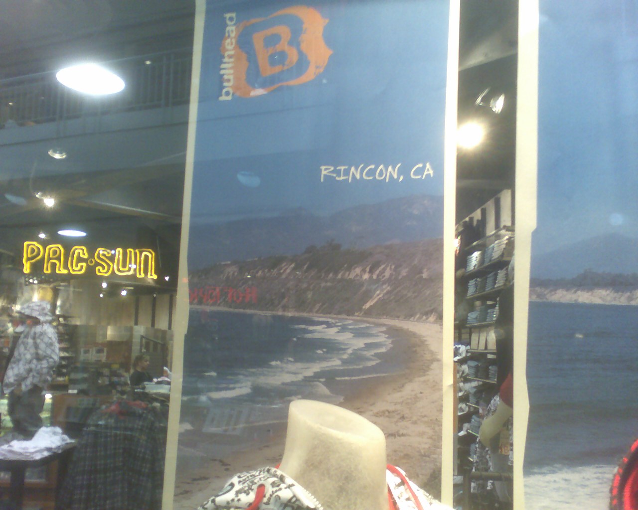 I was wandering the local mall here in Athens, Ga waiting for Tasha to get her new glasses when I came across a storefront that I just couldn't resist taking a photo of. I wonder if their marketing department knows what really happens on this particular stretch of beach? If you look really close you can see two brush-hogs below launch..;P