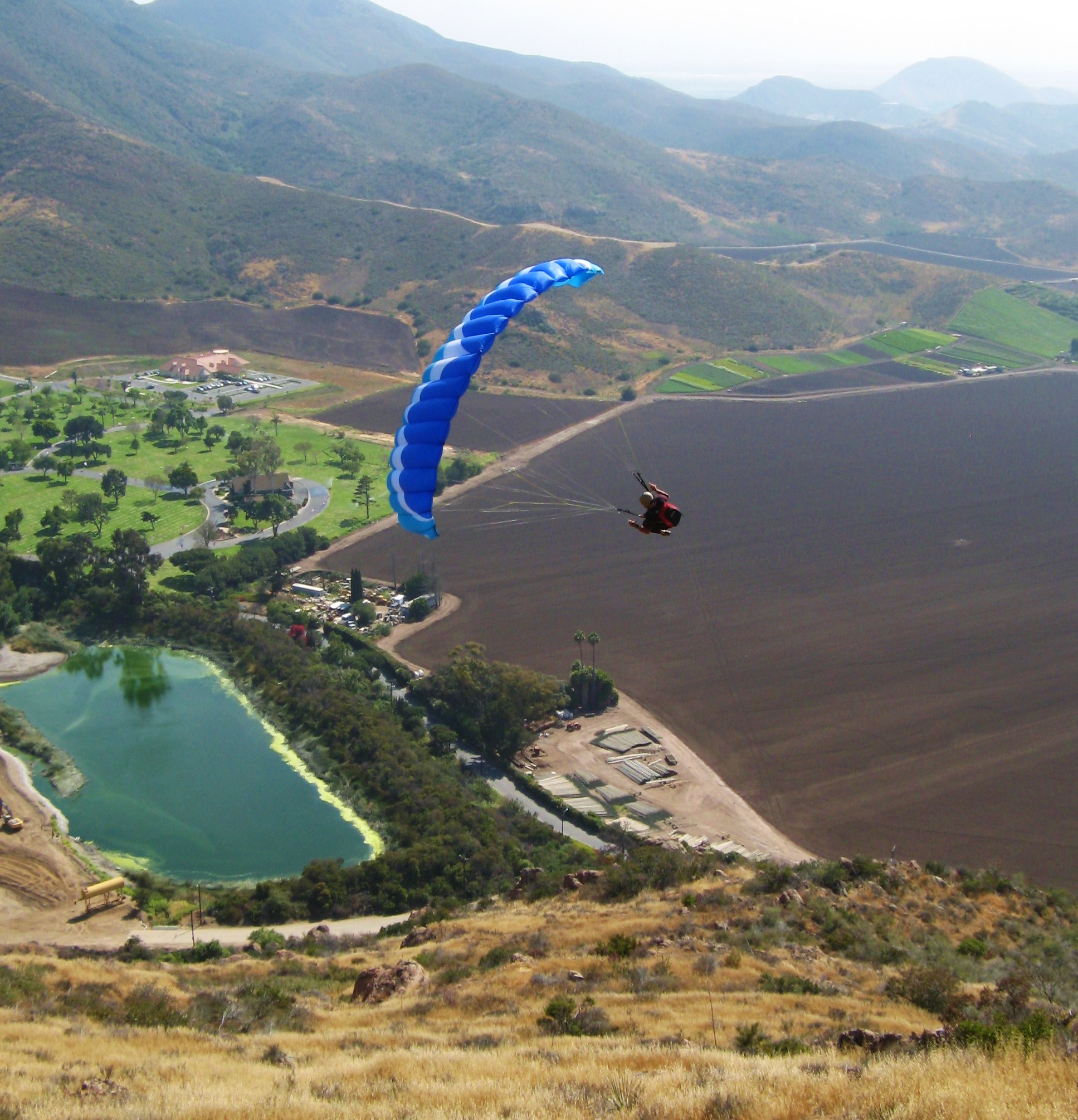 Darn, I missed you again Gary. I went up with Art around 330, I saw Bob and Chip. They both had really cool flights, but I guess I missed you. It was a great day to stay in the air and soar. Super smooth with a surprising amount of lift. Art and I kept getting up into the clouds. By the time I was out I was halfway to the field and the pond so I got to work on some spiral. The last one I got too low and couldn't make it back up so I had to land. I chose the dirt road along the field in front of launch and took a healthy right asym about sixty feet up, which was surprising because the air was so smooth. I guess you gotta watch out for that venturi even on light days. Can't wait to see you fly that thing at the grade.