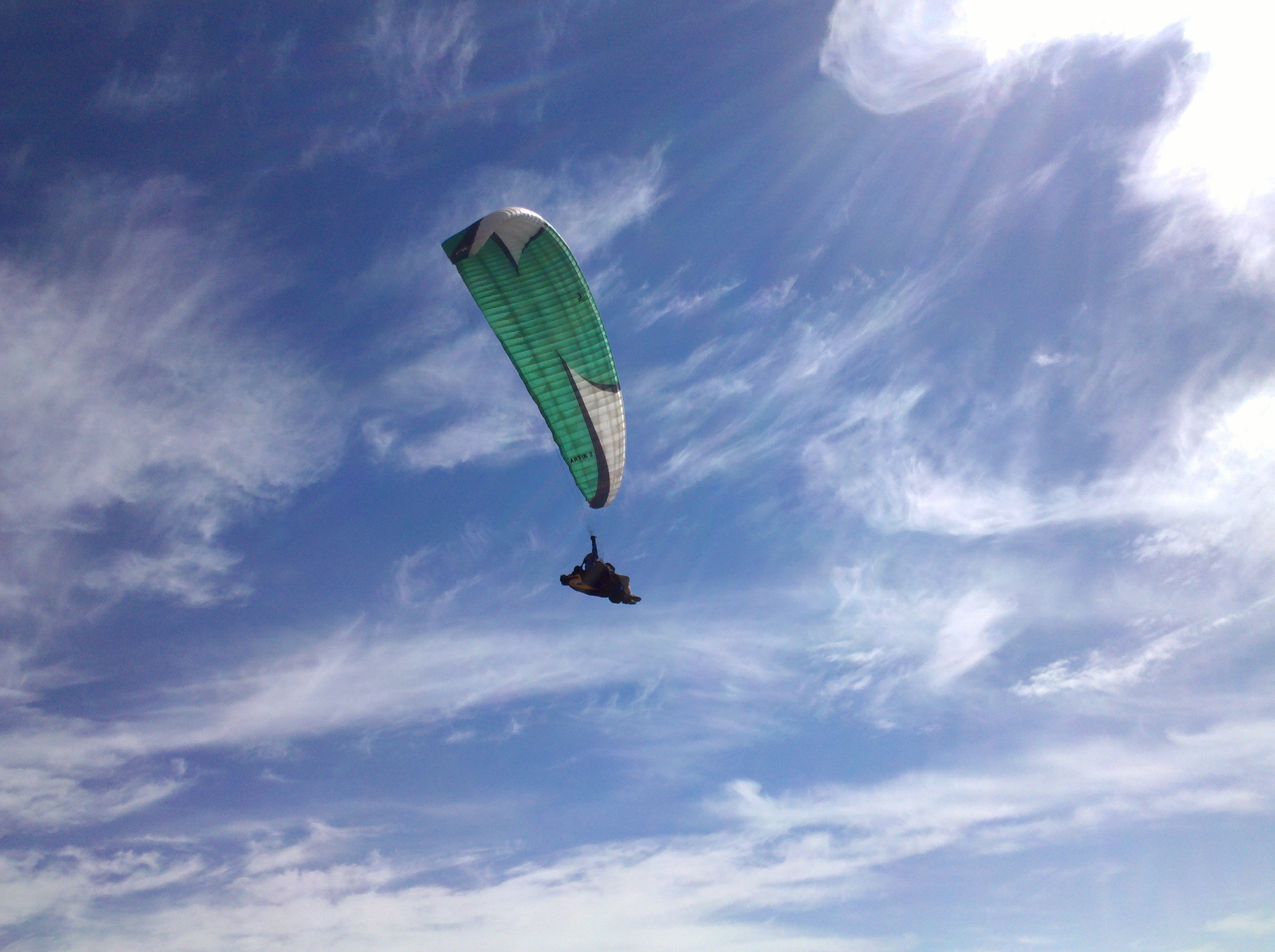 Well, I FINALLY made it into Lockwood Valley!!! I launched after Zippy and found lift right away that took me to 10K. I then boated up and down the range between 9K and 11K. Reliable lift was always over launch/knob, so I kept going back there to tank up. I hit 12.7K in one of those tank ups. I went OTB at 11.7K and headed straight toward Lockwood Valley because there was a big cloud in that direction. I could see rain on the northwest side of LV. Terry Taggert was scratching over the badlands and DD had landed at Dry Canyon. I was down to 7500 and was thinking about heading back to Dry Canyon, when I started getting lift over a big hill north of LV road and west of the badlands. I rode that to 10.2K and then told Kathleen that I'm going to make it into LV. I stated heading SE to get away from the rain and it started hailing pea sized ice balls on me. I'm heading toward the foothills to the south of LV, but they are all in the shade and I get nothing. I'm down to 7000 and made a bee line toward the airport. I get there with enough altitude to do a few circles in an attempt to find the wind direction - it was N NW. It seemed like there was no wind on final and at the last minute, I remembered that the ground is 5100 feet, so I threw the bar out way earlier than normal and landed nicely. I should have landed closer to the road, but that never entered my mind - long walk, but nice and flat. Terry landed on the south side of the road close to the airport. Jonathan landed at Quail Lake, and I don't know where Marge, Bob Anderson, and Zippy landed. It was a fun day. Now I'm gunning for the Antelope Valley.