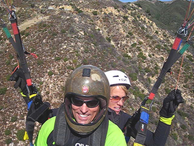 lots of tandems being had today and a full bus full of up time junkies at eliminator. got to demo the artik 3 today so that was fun. lee hucked early and dug one off the monastary to way high in the sky and had us all hustlin to launch. michelle quickly skyed out and was cruisin all over the place. met up with tyronious at double r where he was at 4700, took my 42 and the yeasty easty tailwind and we were westbound to the peak, got a little dolphin luvin and kept on truckin to altenator where the fly above all crew were. some of them were gettin high at west bowl and cathedral and beachbound. it was very windy at altenator, gained a few and turned tail. into the headwind but good climbs and glides all over the place. ronious and i hooked up with jackson b at thermal factory and cruised on with king khan in tow after his top landing and reboot at ej bowl. from monticito on, i could never get much above 3 and the east was getting stronger. jackson b and tyrone stayed high. i flushed off the begining of castle and boated my way to padaro. those two crackheads got 5000+ at the end of castle and with a good amount of east in their faces took the carp town tour and ended up at padaro next to this cracka. nice day! thanks michelle for the retrieve!