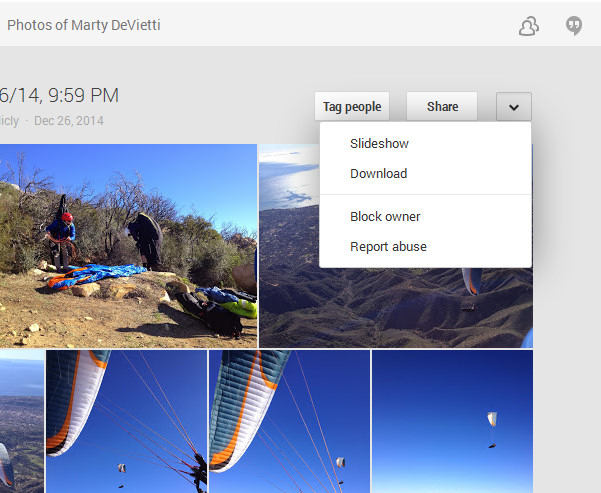 The little arrow in the upper right-hand allows you to download the entire set as a 72MB zip file. Or you can play it as a full-res slide show and download just the photos you want. You may need to be logged in to Google+. I can't say for sure.