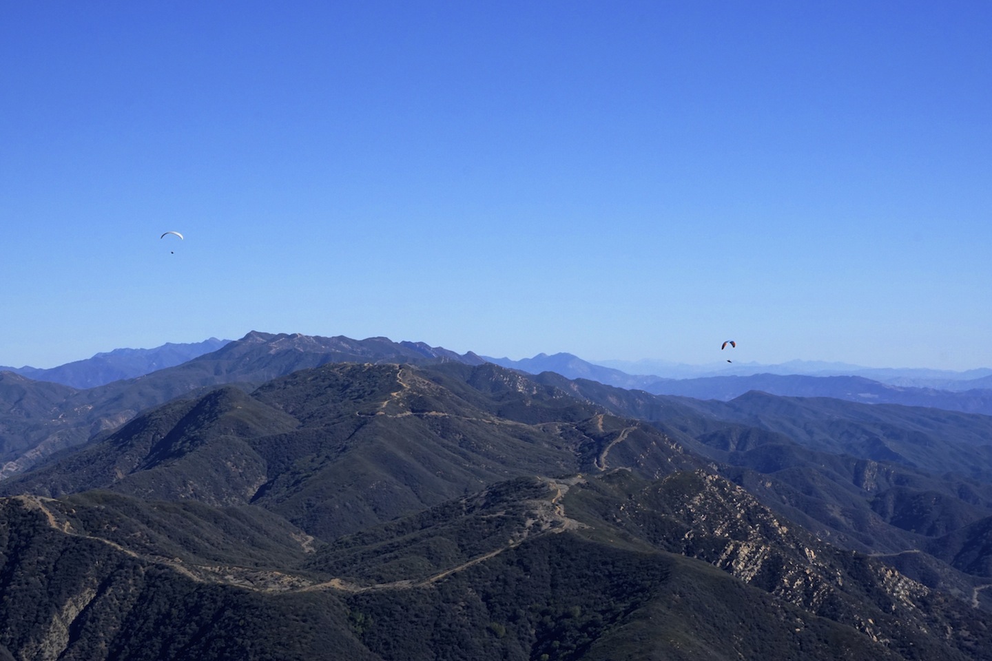 Aaron took the low route back spooning the hill right into La Cumbre. At thermal factory we had Timmay with us for an eastbound run for whiteledge and beyond. Tim and Aaron always seem to leave the thermals sooner than I do. I can't help but topping up a little more. If its 500 up I stick with it until it slows down. Thinking this will put me in a better position. Trying to fly fast on transition I always think I will overtake them or at least catch up, but somehow we end up together, which is really the plan anyway, flying as a group. Got a stellar climb off Montecito to 4700+, but still chasing those guys to Castle before reconnecting, me on the high road and them working the low route.