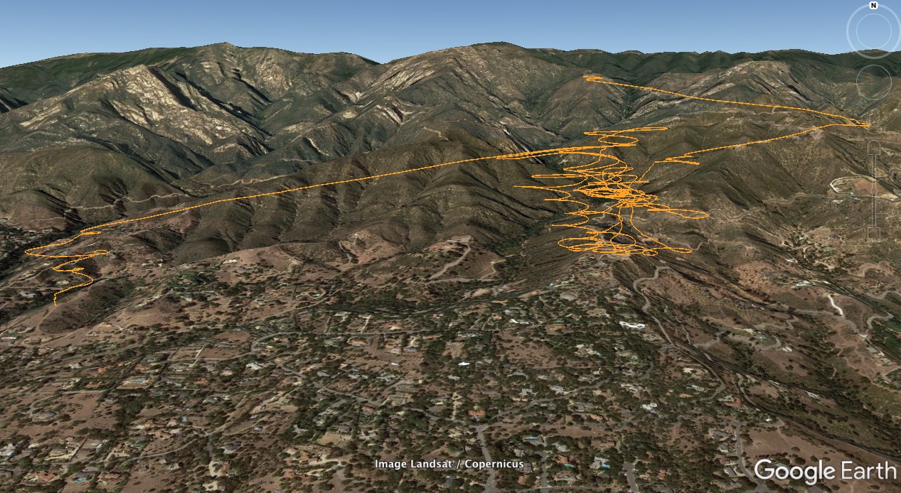 Chris, your jpg image gives a quick overview showing a probable SE/SW convergence drawing up both sides of the Monastery, but to “analyze” your flight, a simple (uncluttered) KML or KMZ file would be useful. I also suspect that the clouds were a big factor?