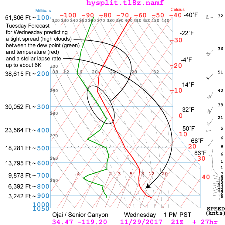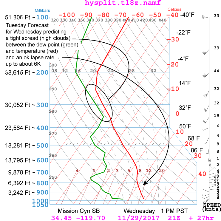 On Tuesday, Ojai offers a better lapse rate than SB, up to about 5K. SB’s lapse rate is weaker, but not inverted. The wind backs off enough that I suspect SB will work good enough that it isn’t worth the cost of trekking to Ojai